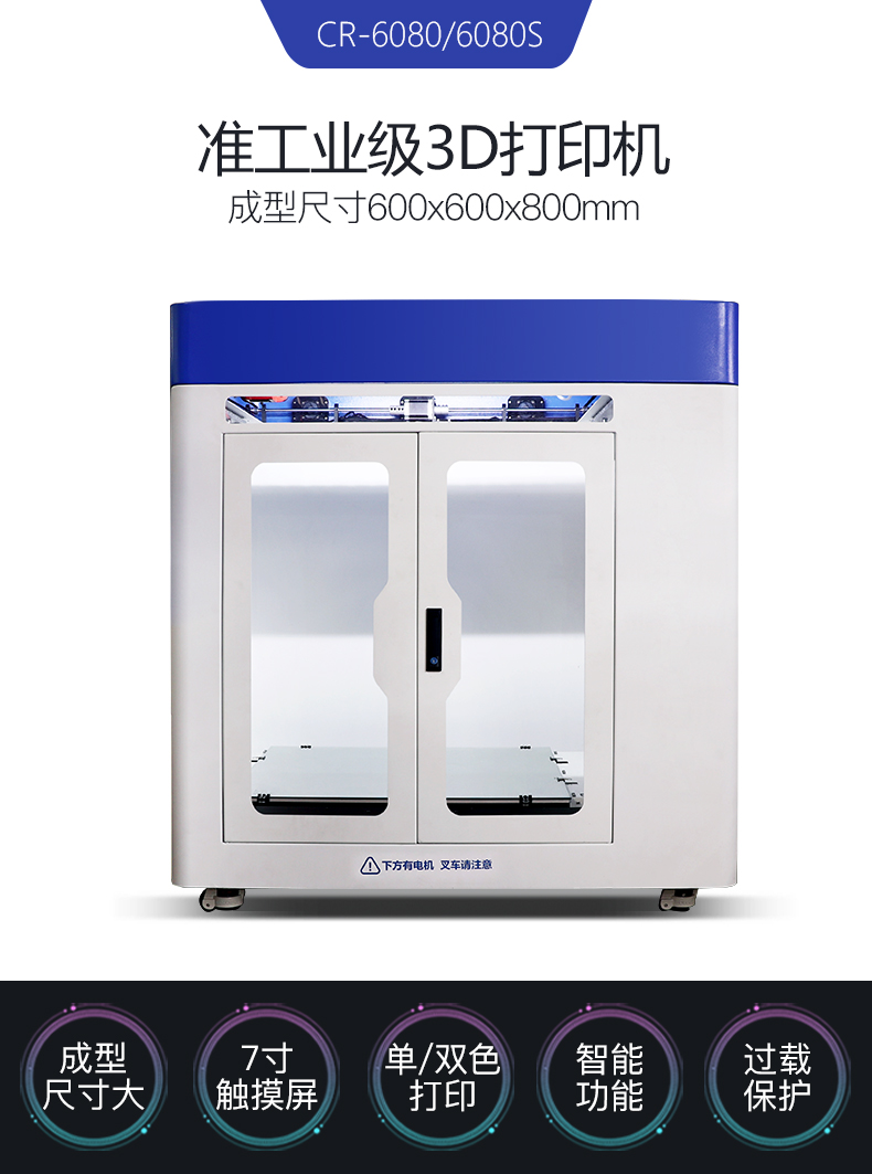 CR-6080S,准工业级3D打印机!成型尺寸大、7寸触摸屏、单 /双色打印、智能功能、过载保护